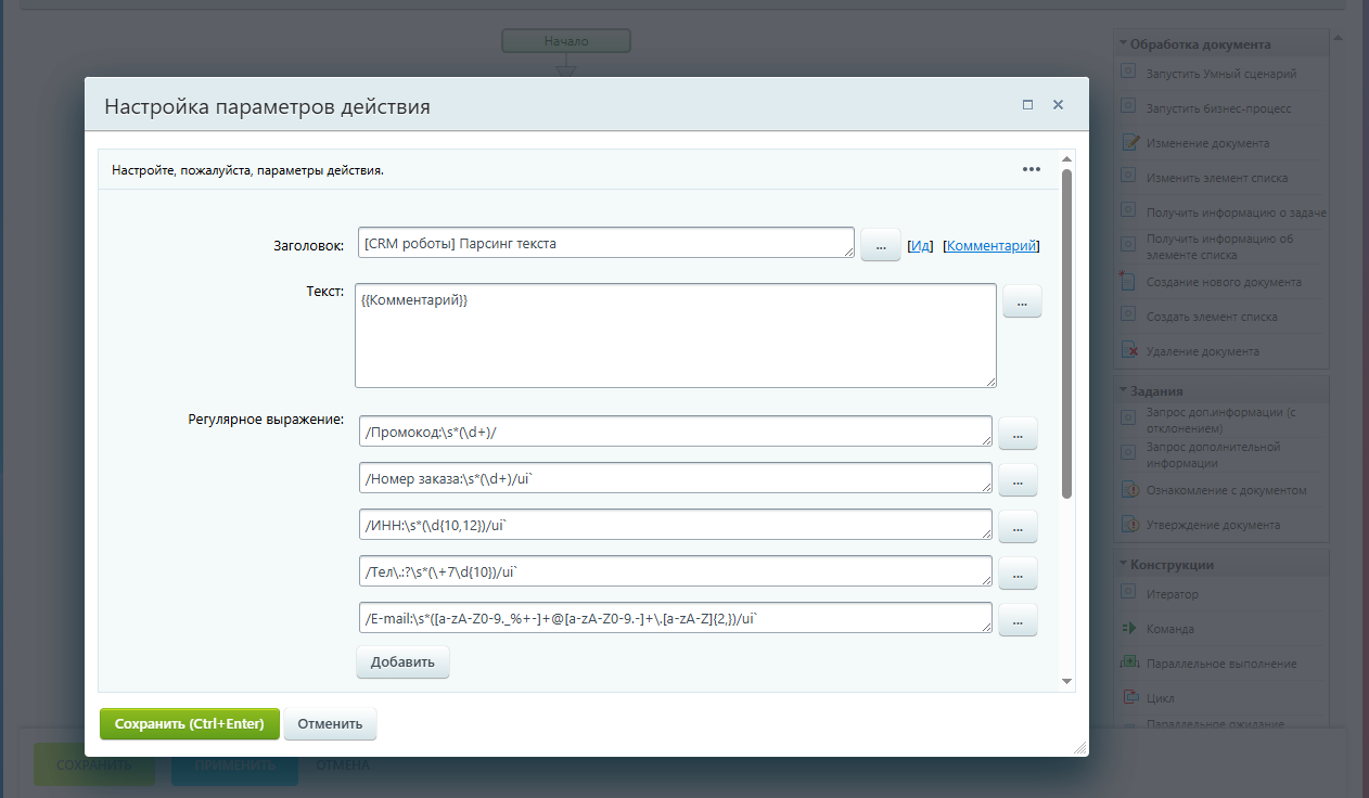 Помогает автоматизировать разбор однотипных заявок и сообщений.
