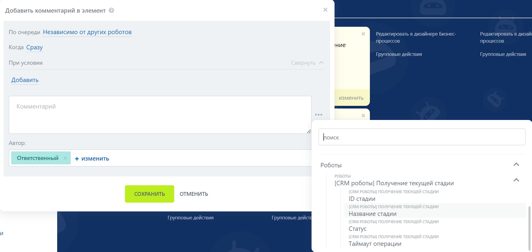 Приложение CRM-роботы Битрикс24 предлагает различные возможности для автоматизации бизнес-процессов. Одним из полезных инструментов является робот(активити) “Получение текущей стадии”.